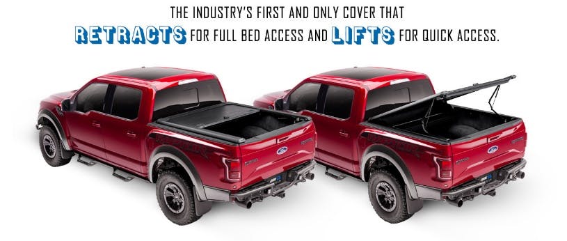 Trying to decide between a retracting cover or a hinged cover? Don't. The all-new DoubleCover allows you to lift open for quick access and retract for full bed access.