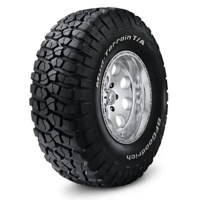 BF Goodrich Mud-Terrain KM3 T/A Power through mud and loose soil with our Terrain-Attack tread design. Its massive tread blocks are designed to deliver incredible grip from any angle of approach, and Mud-Phobic Bars release compacted mud for continued traction. Take on Earth's toughest terrain with advanced Krawl-TEK compound that enhances grip on rock and slick surfaces. Plus, a Linear Flex Zone allows the tire to flex and envelop objects in aired-down driving situations. Go places others only dream of, thanks to race-proven advancements. CoreGard Max Technology uses a thick sidewall shield and specialized compound to help guard against sharp objects, while Traction-Armor Sidewall Sculpture helps prevent sidewall splitting. |