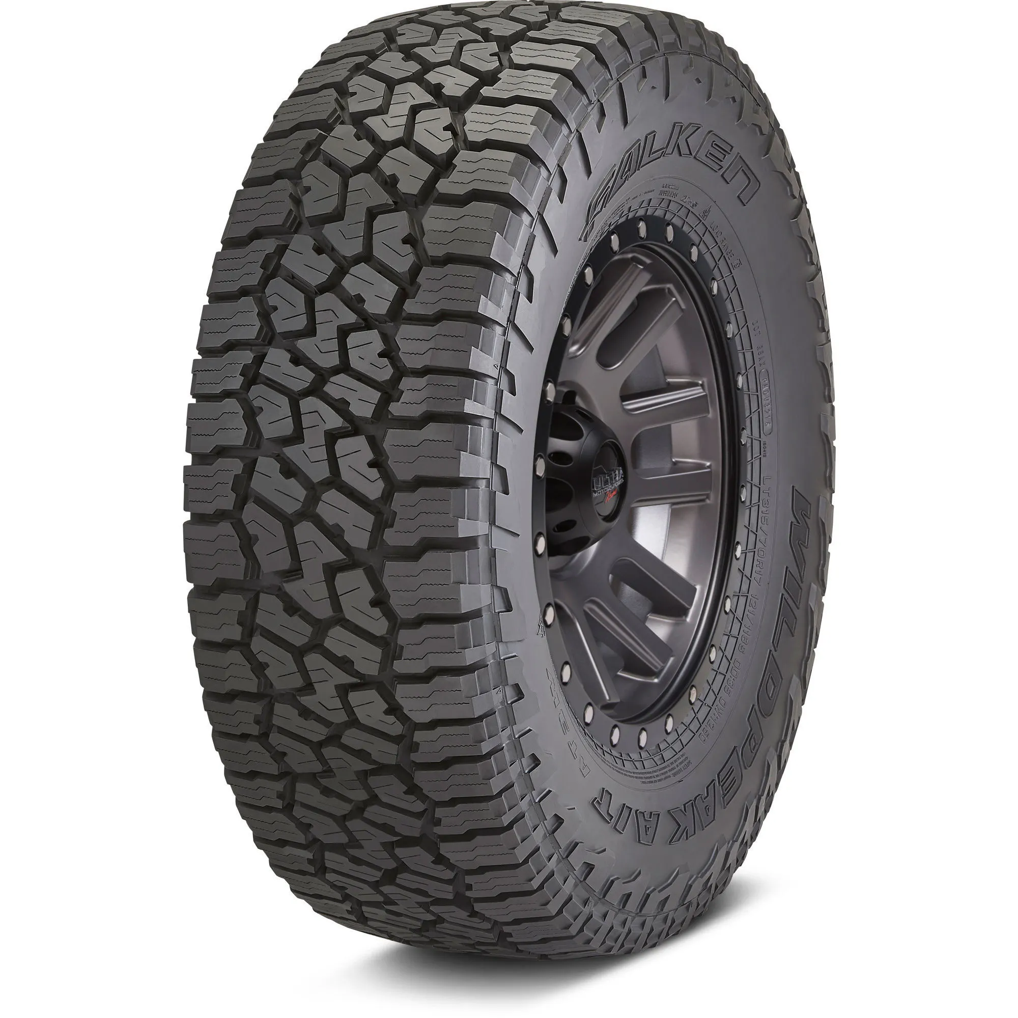 Falken Wildpeak M/T Trusted by the pros to take on the harshest conditions, the tough WILDPEAK M/T is built to get you there and back whether you’re on the pavement, mud, snow or rocks. The M/T features Falken’s proprietary three-ply DURASPEC™ Sidewall Technology developed to sustain the most punishing off-road conditions. DURASPEC™ also features two high ply turn-ups that provide an additional layer of protection and durability. An aggressive upper sidewall provides additional traction at low air pressures on rugged terrain. The WILDPEAK M/T also features exceptional road manners thanks to an optimized variable three-pitch tread pattern and precision manufacturing technology. |