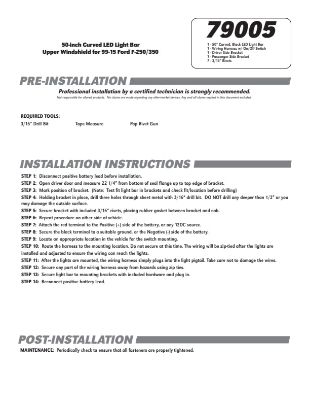 Kit includes Black-out curved light bar, custom vehicle brackets, hardware and wiring harness with switch.;Easy bolt-on installation;24,000 LumensApplication Summary: